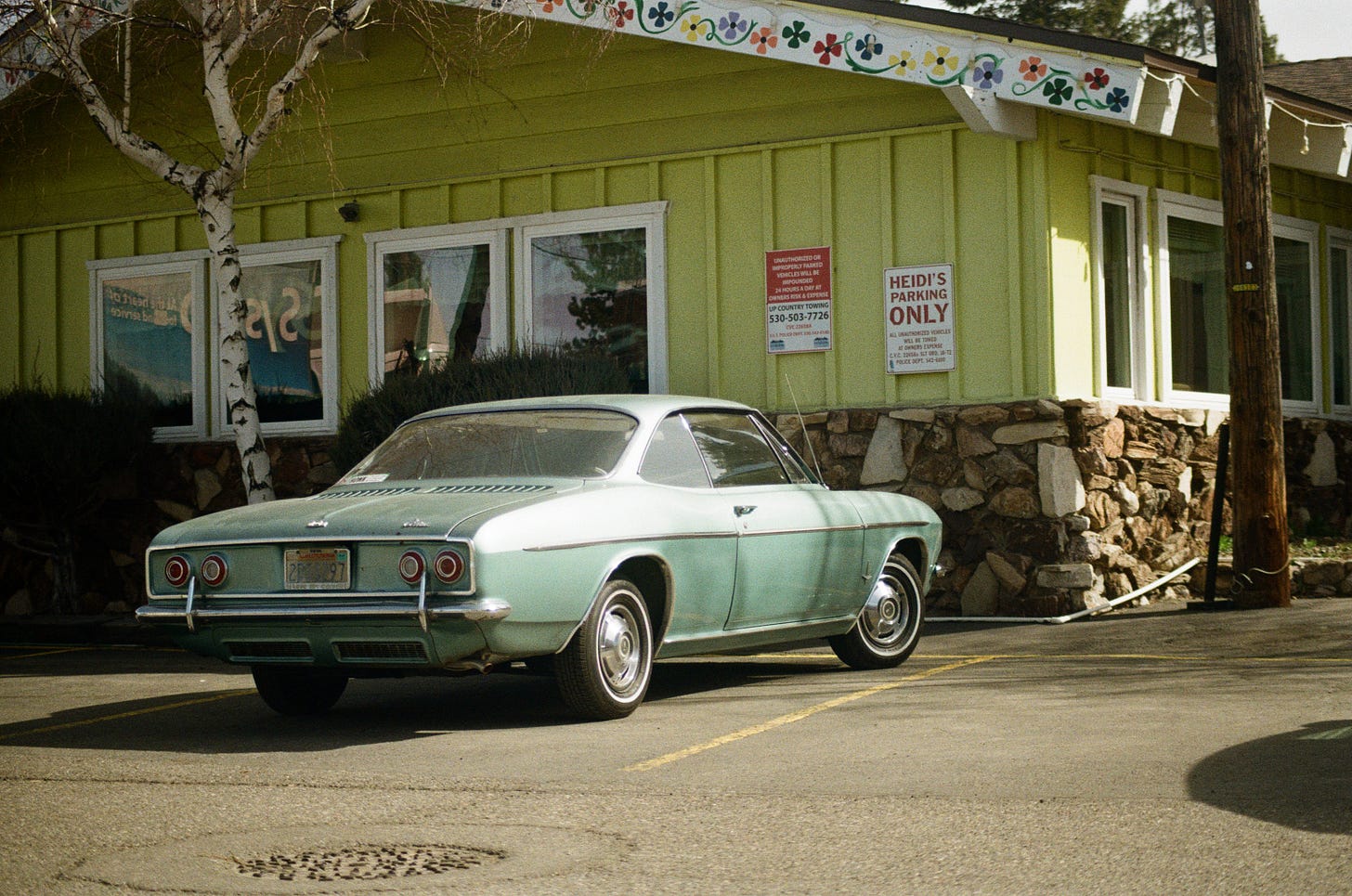 It had been a warm drive up the mountain. I rolled into Camp Richardson with the windows down. The desk clerk stood on the porch with the landscaper. I audibly overheard burbling conversations about who was pulling up in the classic car. I was also pulling up on a Monday to a basically deserted resort. Most of the surrounding parks still had their parking lots closed for Winter. It was about 62 degrees outside as I pulled the parking brake handle and switched the ignition off.