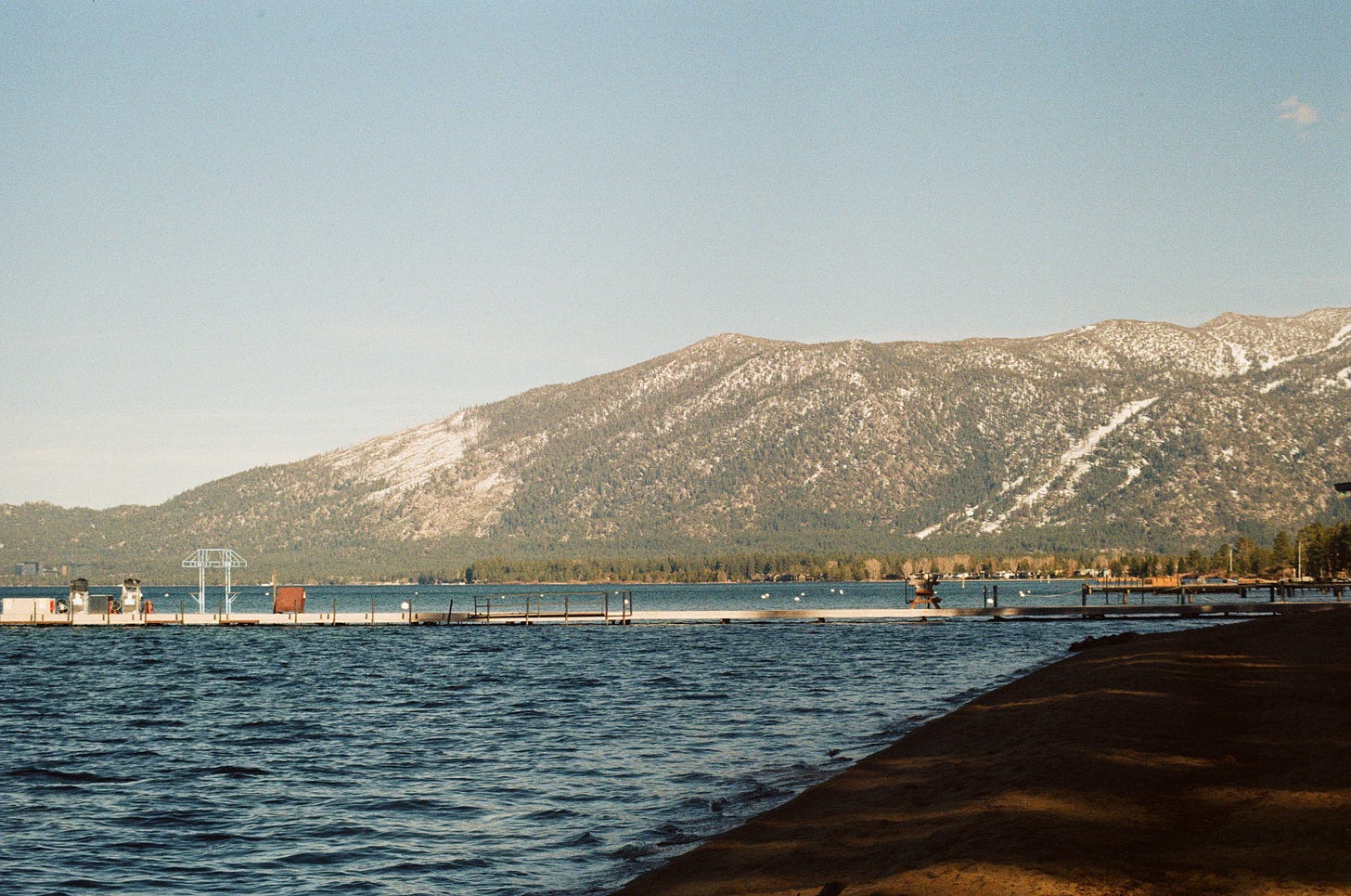 I told myself to sit for a bit. I wanted to see if I could shut it all off. Sitting on the end of the lakeshore pier, I glanced down at the water. It is still luckily true that Lake Tahoe’s waters are still pretty clear. The sloping sands off of Camp Richardson aren’t all that deep, but I could see stones in the water standing stout in the deepening turquoise pushing off the royal blue in front of my eyes. I giddly put my left hand in the water, wondering how actually cold it was. I knew at least the lake waters would have a respect for time and season.